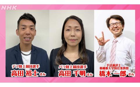 ゲストは、「デフリンピック」で陸上の男子110mハードルに出場する高田裕士さんと、パラリンピック2大会に出場している陸上選手、高田千明さんご夫妻です。お二人に、大会への意気込み、観戦する上でのポイントなどを伺います。そして、互いに支え合う夫婦の絆についてもお聞きします。メッセージ、お待ちしています!